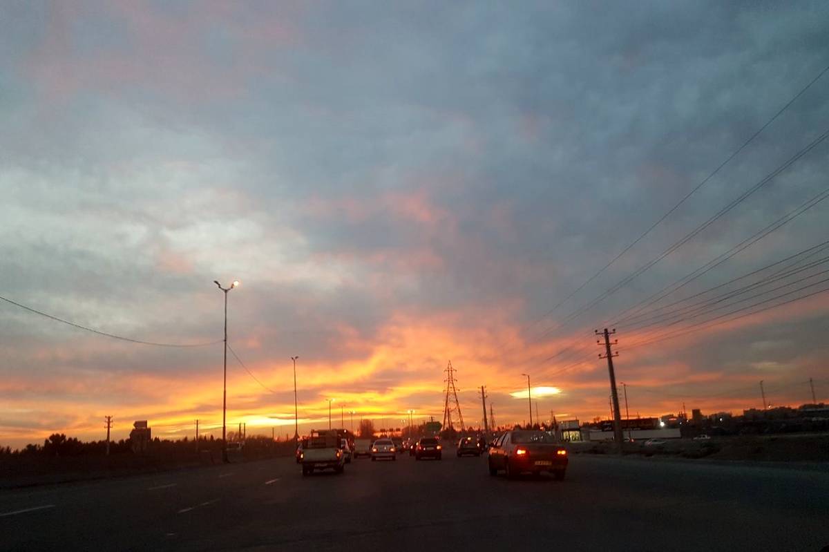 در این صحنه غروب آفتاب از پشت ابرها صحنه ای بی نظیر و کمتر دیده شده را به نمایش گذاشت که گویی دو خورشید در حال غروب در آسمان تهران هستند.