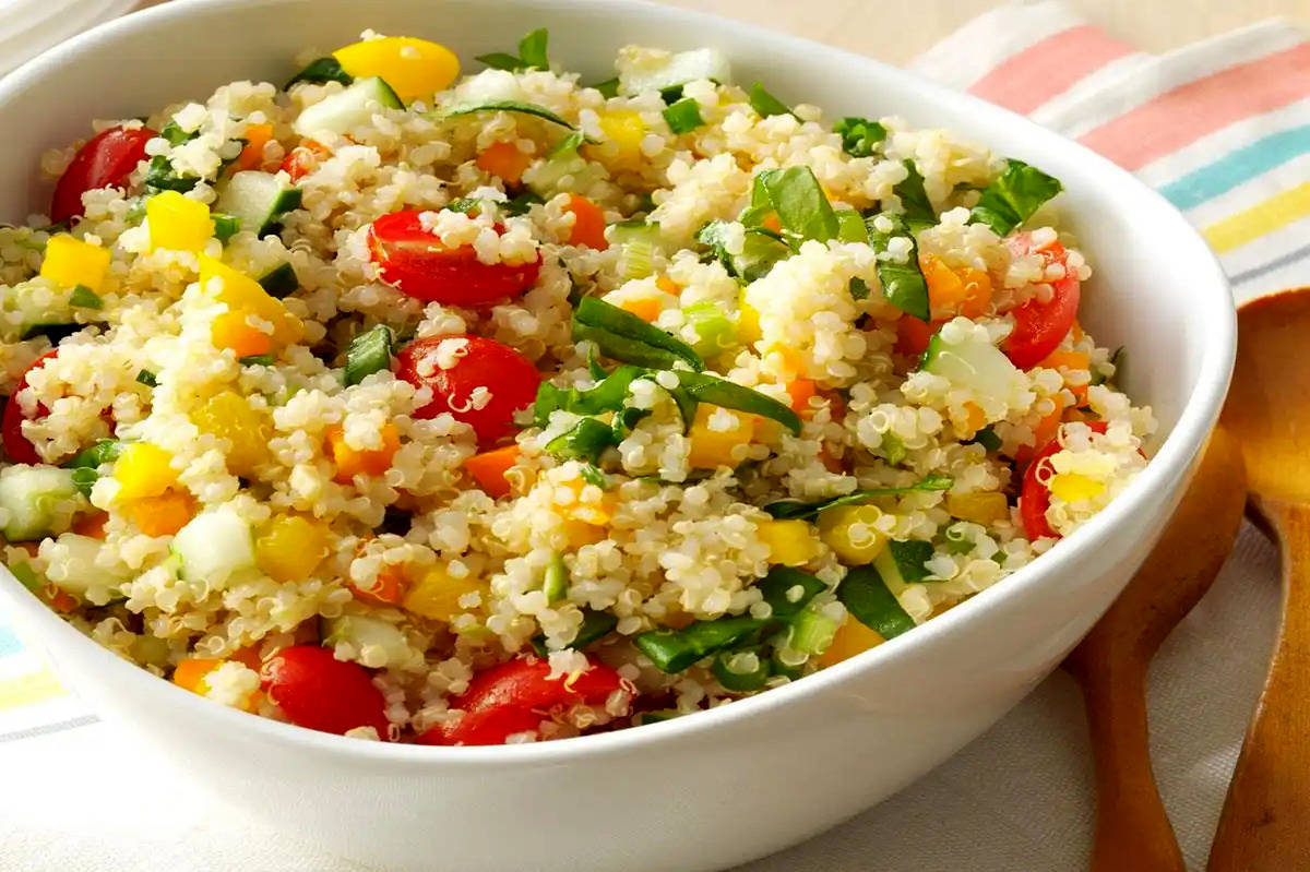 چی شی نوشت: سالاد کینوا با ذرت و پیازچه یکی از غذاهای سالم و خوشمزهای است که میتواند به عنوان یک وعده غذایی کامل یا یک پیش غذای خوش طعم در مهمانیها و جشنها سرو شود.