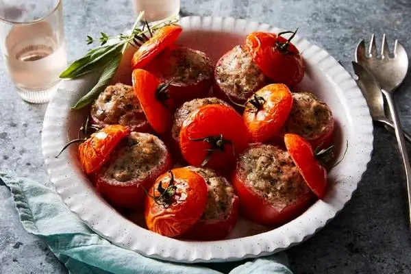- مواد میانی را داخل گوجه فرنگیها بریزید.