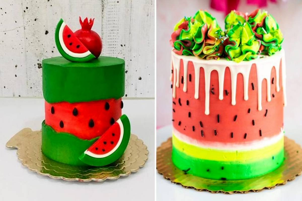 تزیین کیک شب یلدا با خامه به شکل هندوانه