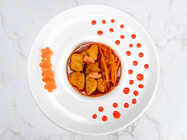 ۸. خورش هویج را با خلال پسته و زرشک تفت دادهشده تزیین کنید و با برنج زعفرانی خوشعطر و سالاد شیرازی به سر میز بیاورید.