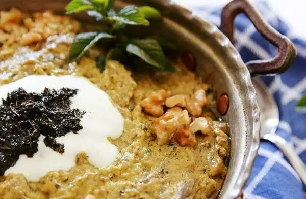 حالا نیمی از پیاز داغ را به بادمجان پخته اضافه کنید و هم بزنید تا مواد با هم مخلوط شوند. نعناع خشک را به بقیه پیاز داغ اضافه کنید و سی ثانیه نعناع را تفت بدهید، سپس کشک را اضافه کنید و خوب هم بزنید تا کشک با نعناع داغ و پیازداغ مخلوط شود. حالا بادمجان له شده را به ترکیب نعناع داغ و کشک اضافه کنید و در آخر گردوی خرد شده را بریزید. اجازه بدهید کشک بادمجان ۲۰ دقیقه بجوشد، سپس اجاق گاز را خاموش کنید و کشک و بادمجان را داخل ظرف سرو بکشید و روی آن را با کشک و پیاز داغ و نعناع داغ تزیین کنید، نوش جان.