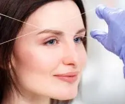 - سپس نخ را روی صورت بلغزانید تا موهای صورت آرام آرام گرفته شوند.