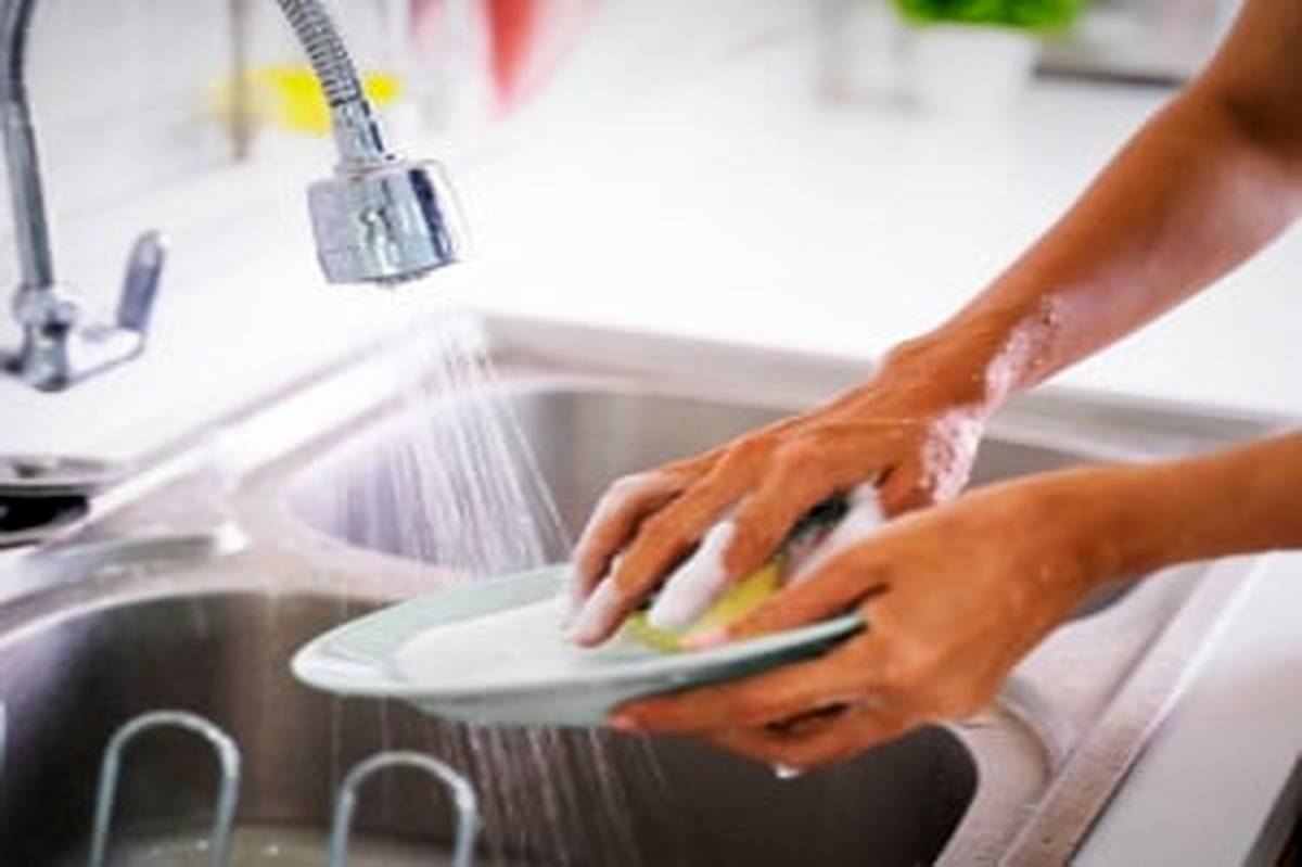 برای کاهش مصرف آب هنگام شستن ظروف، شیر آب را ببندید و به جای آبکشی جداگانه، یک کاسه یا لگن کوچکی را برای شست و شو پر کنید.