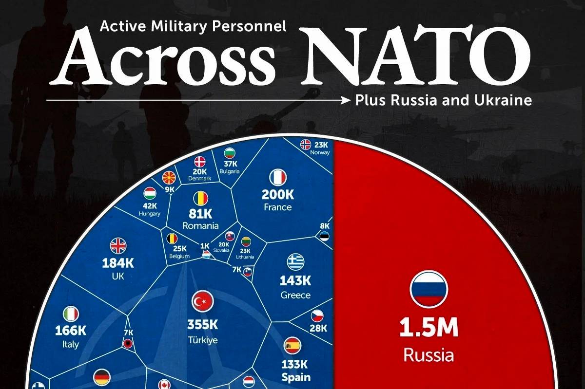 برای آشنایی بیشتر با این موضوع، تعداد پرسنل فعال نظامی در ناتو، روسیه و اوکراین در اینفوگرافی زیر به تصویر کشیده شده اند تا ببینید که چگونه آمار نیروها در عصر تنشهای ژئوپلیتیکی فزاینده با یکدیگر مقایسه میشوند.