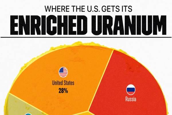 روسیه با تأمین ۲۷.۲ درصد از خدمات غنیسازی، بزرگترین تأمینکننده خارجی برای رآکتورهای هستهای غیرنظامی ایالات متحده است. پس از روسیه، ۱۲ درصد اورانیوم غنیشده از فرانسه، ۸ درصد از هلند و ۷ درصد از بریتانیا تأمین میشود.