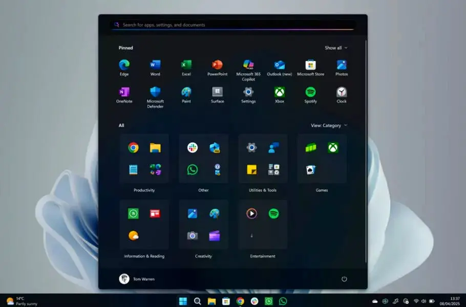 از زمان عرضه ویندوز 11 در 2021، منوی استارت یکی از نقاط بحثبرانگیز این سیستمعامل بوده است. محدودیت در تعداد آیکونهای پینشده، جدا شدن لیست تمام برنامهها (All Apps) از صفحه اصلی و ناتوانی در شخصیسازی بخشهای مختلف آن از مهمترین نارضایتیهای کاربران بود. منوی جدید با طراحی بزرگتر خود اکنون امکان پینکردن حداکثر 8 برنامه در هر ردیف را فراهم میکند و محدودیت ۳ ردیف نیز برداشته شده است. همچنین تمام محتوا در یک صفحه اسکرولپذیر نمایش داده میشود و نیازی به رفتن به بخشهای جداگانه نیست.
