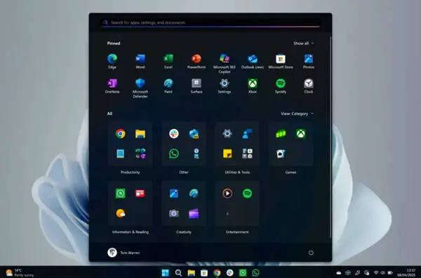 منوی استارت ویندوز 11 با طراحی جدید