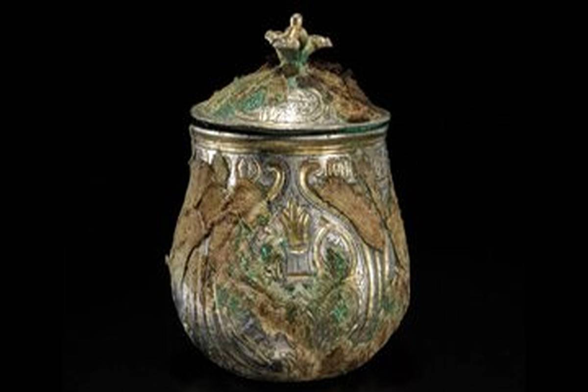 جداره بیرونی این ظرف نقرهای در ابتدا تنها از طریق اسکن اشعه ایکس قابل مشاهده بود، چرا که مقامات موزه نمیخواستند آسیبی به الیاف حائل آن وارد شود. از آن زمان، منسوجات با روشهای پیشرفته تا حدی برداشته شده و ظرف با لیزر تمیز شده است تا خوردگی سبز رنگ روی بیشتر سطح نقرهای آن حذف شود.