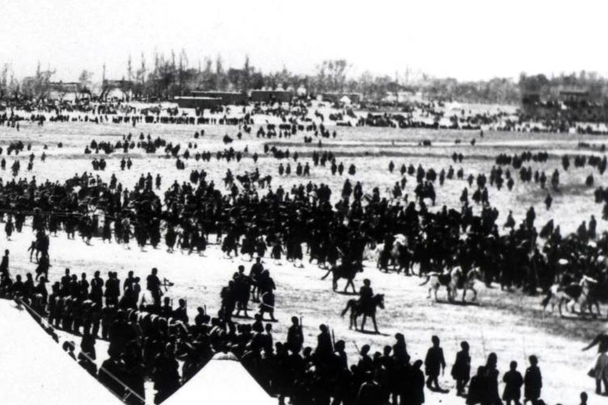 این عکس در سال ۱۲۷۷ شمسی و حدود دو سال پس از به تخت نشستن مظفرالدین شاه گرفته شده است. موضوع عکس برگزاری مسابقۀ اسبدوانی است که در دوران قاجار هر سال به شکل باشکوهی برگزار میشد. ابرایم عکاس باشی در توضیحات مربوط به عکس نوشته است: «چادرهای وزرا و امنای دولتاند در اسبدوانی؛ حسبالامر اعلیحضرت قدرقدرت اقدس شاهنشاهی عکس برداشته شد».