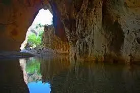 محل جریان آب در این غار از زیر زمین از میان یک تونل طبیعی به سوی سطح پیش میآید. در دوران باستان، جایی که آب از آن بیرون میآمد را «پایان جهان» نامیده بودند.