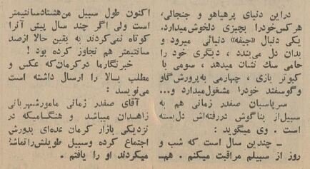 سرپاسبان صفدر زمانی از نیروهای شهربانی زاهدان در شهر کرمان شکار عکاس روزنامه اطلاعات شد.