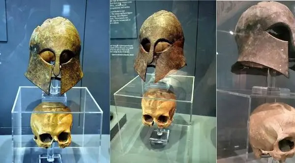 فرادید نوشت: ا ین کلاهخود استثنایی سبک کورینتی مربوط به نبرد ماراتون، در سال ۱۸۳۴ همراه با جمجمهای که هنوز داخلش بود، پیدا شد.