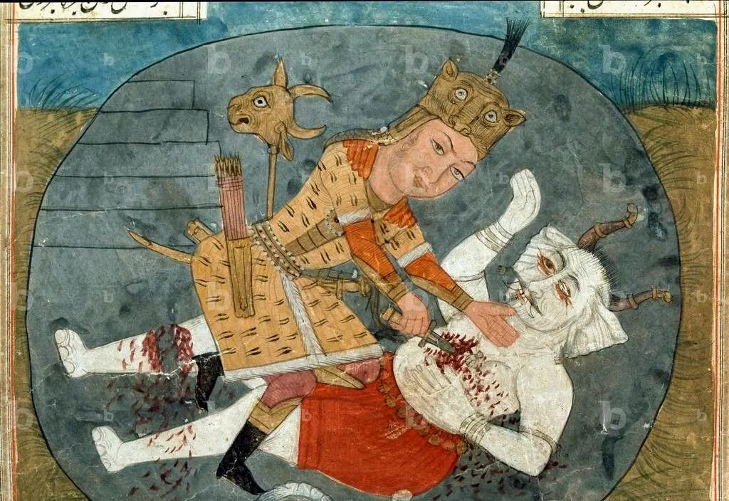 نبرد سختی درگرفت. ارژنگ با غرشهای سهمگین، زمین را میلرزاند، اما رستم، با چالاکی و قدرتی که تنها از یلی چون او برمیآمد، بر دیو چیره شد. با ضربهای سهمگین، ارژنگ را از پای درآورد و سر از تنش جدا کرد.
