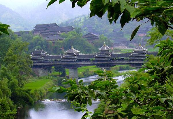 پل «باد و باران» که تنها با چوب و سنگ ساخته شده و حتی یک میخ هم در آن بهکار نرفته، روی رودخانه لینکسی در چین کشیده شده است. روی هر یک از پنج پایهی آن، پاگودایی قرار دارد که همچون معابد کوچک به نظر میرسند. این پل به سبک معماری سنتی مردم دانگ سال ۱۹۱۲ ساخته شد و پاگوداهای آن مدتهاست پناهگاهی در برابر باد و باران برای عابران بودهاند.