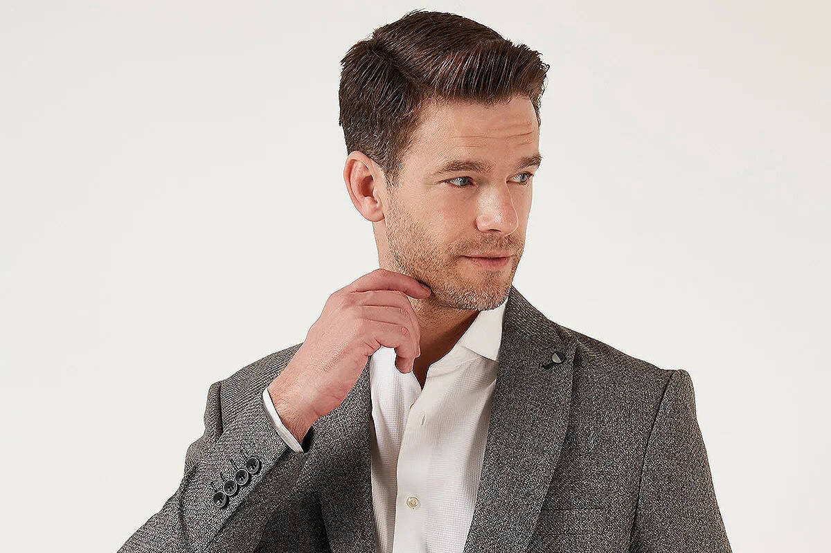 کت تک طوسی روشن را با پیراهنی به رنگ آبی آسمانی، شلوار سفید و کفش قهوهای یا آبی تیره ست کنید.