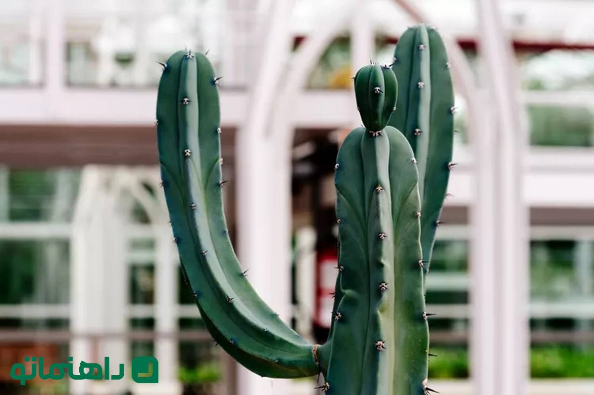 به گزارش راهنماتو، یک کاکتوس ستونی و سریع‌الرشد است که با گذشت زمان ظاهر درخت مانند پیدا می کند. این گیاه می‌تواند در کهنسالی و در طبیعت حتی به ارتفاع بیش از ۵ متر برسد، اما در دوران جوانی به‌صورت گیاهی بوته‌ای باقی می‌ماند. این گیاه نیمه مقاوم برای رشد به خاک با زهکشی مناسب و حداقل ۶ ساعت نور مستقیم خورشید نیاز دارد. هنگامی که این کاکتوس به ارتفاع 60 سانتی‌متری می‌رسد، در اواسط بهار گل‌هایی کوچک و زیبا به رنگ سبز متمایل به سفید شکوفا می‌شود. میوه‌ آن نیز شیرین و خوراکی است و طعم لذت بخشی دارد.