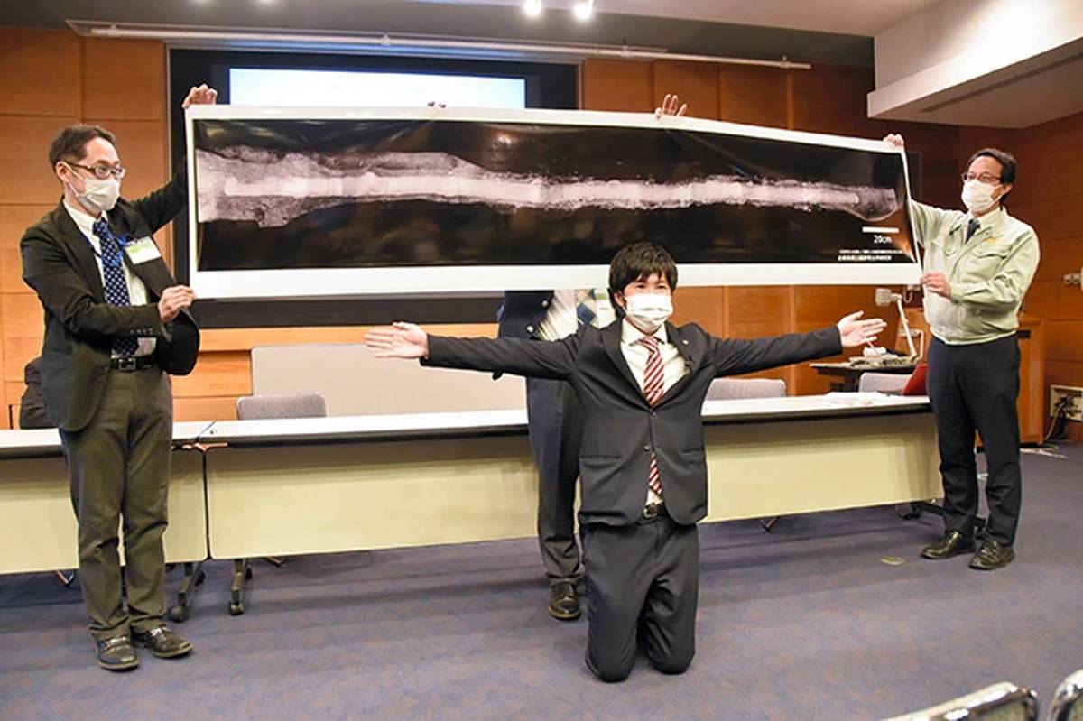 شمشیر یافت شده نیز ۲ متر و ۳۷ سانتیمتر طول و ۶ سانتیمتر عرض دارد و از نوع شمشیرهای معروف به «داکوکن» است که تیغۀ آنها تا حدی خمیده است. این بزرگترین شمشیری است که تا کنون به طور سالم و یکپارچه در یک سایت باستانشناسی در ژاپن پیدا شده است.