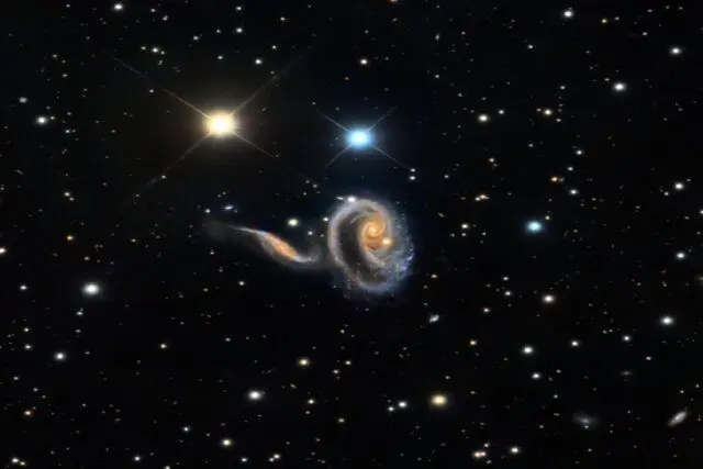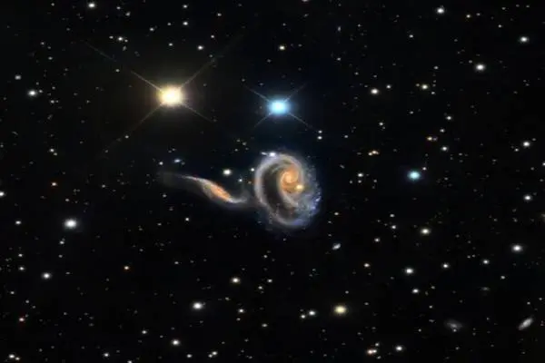 برای مثال، کهکشان مارپیچی بزرگ «آندرومدا»(Andromeda) حدود دو میلیون سال نوری از ما فاصله دارد و به طور اجتنابناپذیری به کهکشان راه شیری نزدیک میشود. دو کهکشان عجیب این عکس ممکن است نمونه مشابهی را از رویارویی آندرومدا و راه شیری در آینده دور ارائه دهند.