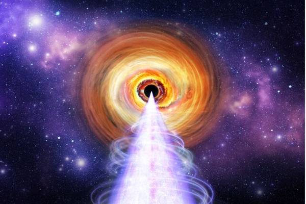 در این طرح تصویرسازی‌شده، یک فوران قوی به تصویر کشیده شده است که از یک قرص برافزایشی نارنجی‌رنگ در حال چرخش به دور سیاه‌چاله ساطع می‌شود. درک فرآیندهای پرانرژی در سراسر کیهان به انسان کمک می‌کند تا فرآیندهای مشابهی را که روی زمین یا نزدیک آن رخ می‌دهند، بفهمد.