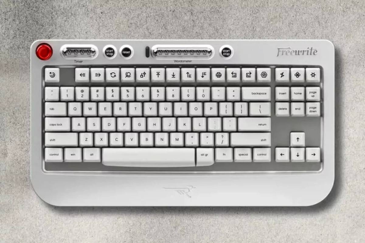 کیبورد مکانیکی Freewrite Wordrunner به شمارنده الکترومکانیکی اختصاصی برای تعداد کلمات تایپشده و تایمر چهار رقمی مجهز شده است.