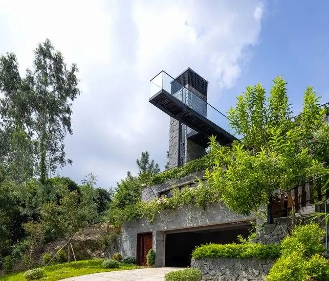 خانه تپه ای سنگی آجیسای که توسط گروه معماری IDEE طراحی شده، روی زمینی با شیب ملایم قرار گرفته و مناظر پانوراما از یک دره، زمین گلف و رشته کوه تم دائو در ویتنام را ارائه می دهد.