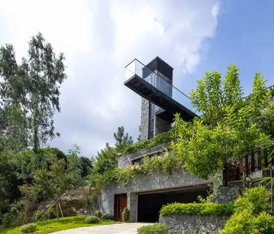 ساخت و ساز روی این زمین به دلیل جنس خاک و شیب آن با پیچیدگی های طراحی متعددی بوده است. این اقامتگاه در زمینی به مساحت 1000 متر مربع، مطابق با سلیقه مشتری طراحی شده است و شامل یک خانه باز و طبیعت محور است که به طور یکپارچه با محیط اطراف ادغام می شود و بهترین حالت ممکن را برای یک خانواده بزرگ که به پنج اتاق خواب و فضاهای اضافی نیاز دارند، تضمین می کند.