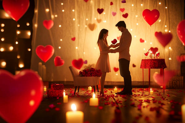 با استفاده از شمع، گلبرگ گل رز، و یادداشتهای عاشقانه، مسیری طراحی کنید که به هدیه سورپرایز ولنتاین شما برسد.