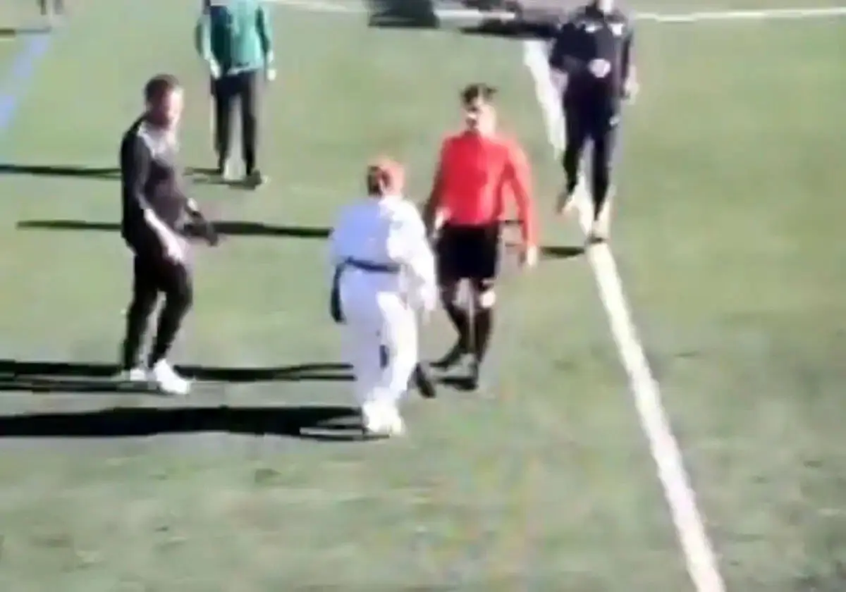 مادر یکی از بازیکنان تیم نونهالان اسپانیول روز گذشته به زمین بازی پرید و داور را مورد حمله قرار داد.