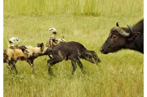 صحنه کشته شدن ۵ گوساله بوفالو توسط سگ های وحشی بسیار هیجان انگیز و در عین حال غم انگیز و فوق العاده وحشتناک است!