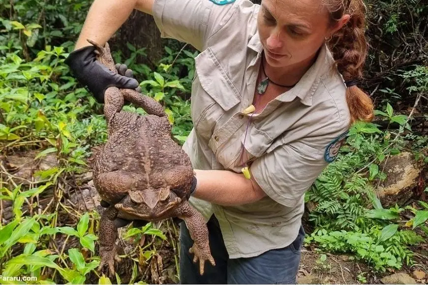 راهنماتو- یک قورباغه غول پیکر قهوه ای رنگ که توسط جنگلبانان استرالیایی در یک پارک ساحلی کشف شده بود، توسط آنها کشته شد! این قورباغه که از نوع وزغ نیشکر است، دو کیلو و 700 گرم وزن داشت و طول بدن آن به اندازه دست انسان بود. جنگلبانان وزغ نیشکر را به عنوان تهدیدی برای زیست بوم استرالیا می دانند. این موجود در واقع نوعی قورباغه مهاجم است. پیش از این، بزرگترین قورباغه جهان با وزن 2 کیلو و 650 گرم در سال 1991 در رکوردهای جهانی گینس به ثبت رسیده بود.