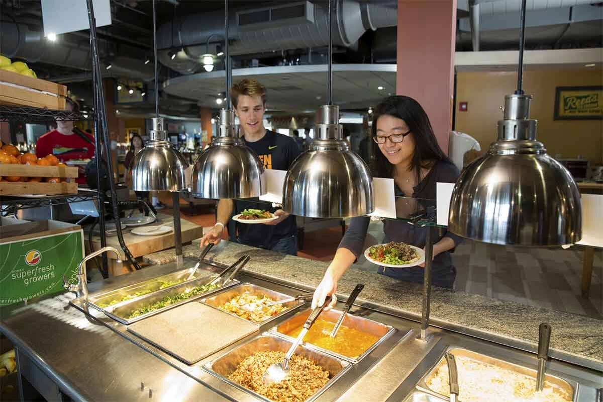 دانشگاههای آمریکا برای سالنهای غذاخوری دانشگاهها امکانات زیادی در نظر گرفتهاند و برخی از این دانشگاهها، منوی غذایی ویژهای را در اختیار دانشجویان قرار میدهند.