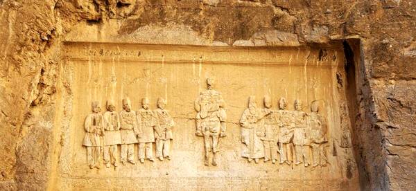 این اثر کتیبه و شکل کندهکاریشده در دل کوه است و اثر مشابهش در تنگه واشی است که تصویر فتحعلیشاه قاجار را نمایش دادهاست. رکنالاسفار، از معاصران ناصرالدینشاه که هردو اثر و هر دو پادشاه را دیدهاست نیز نظر مشابهی دارد.