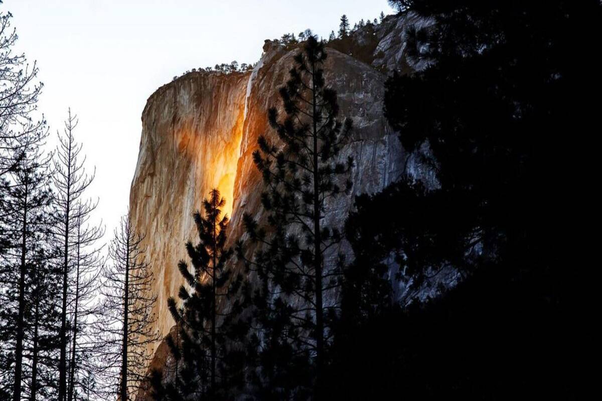 این آبشار در اواخر فوریه، درست زمانی که نور غروب در زاویهی خاصی به دیوارهی گرانیتی الکپیتان میتابه، به رنگ نارنجی و قرمز درمیاد؛ انگار که آتش از دل کوه جاری شده!