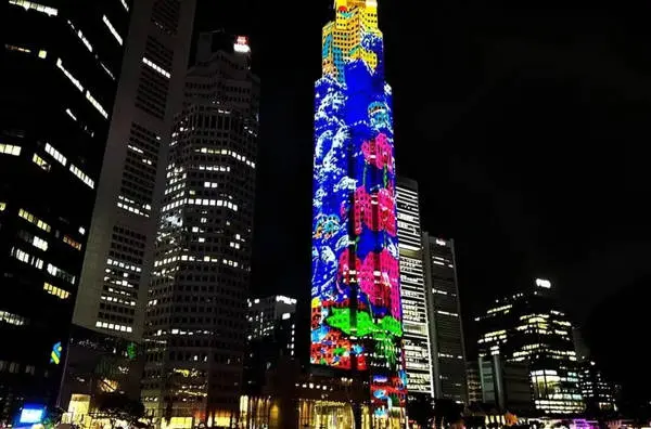 در رویدادی خیرهکننده، نمای یک آسمانخراش ۲۸۰ متری در سنگاپور به یک بوم نقاشی دیجیتال عظیم تبدیل شد. در این نمایش بصری با ۲۵۰ میلیون پیکسل ۳ رکورد جهانی گینس ثبت شده است. این رویداد به مناسبت شصتمین سال استقلال سنگاپور و نودمین سالگرد تأسیس بانک UOB برگزار میشود.