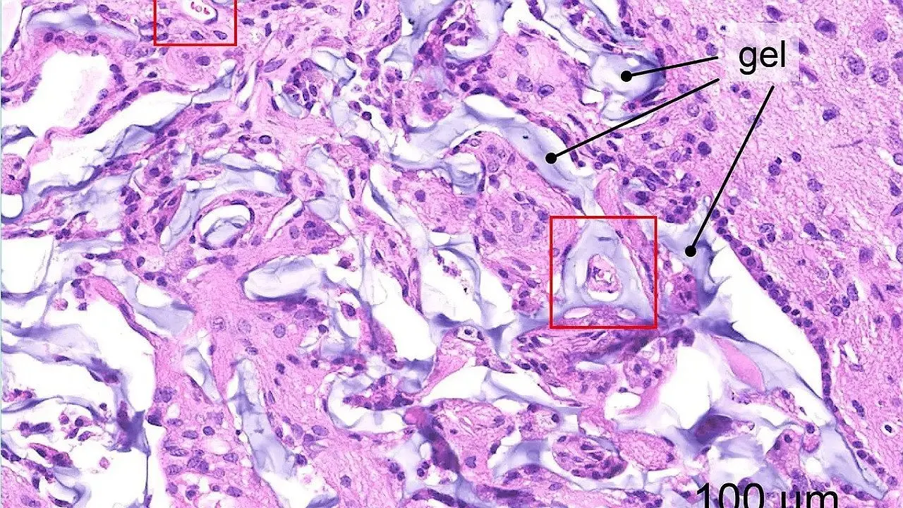 سپس ژل را در یک سرم فاکتور رشد مرطوب کردند تا رشد رگ‌های خونی را تقویت کند و پس از آن با جراحی در نواحی آسیب دیده مغز موش کاشته شد. سه هفته بعد، مشخص شد که سلول‌های ایمنی و عصبی از بافت مغز اطراف به داخل هیدروژل کاشته شده مهاجرت کرده‌اند، به علاوه رگ‌های خونی در آن شروع به رشد کرده‌اند. در مرحله بعد محققان سلول‌های بنیادی عصبی را به ژل تزریق کردند.