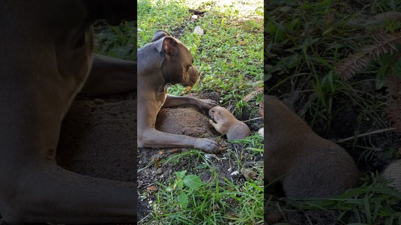 یک سگ بزرگ که مشغول گردش در یک پارک بود متوجه یک سنجاب صحرایی می شود که سخت مشغول حفاری برای ساخت یک لانه است.