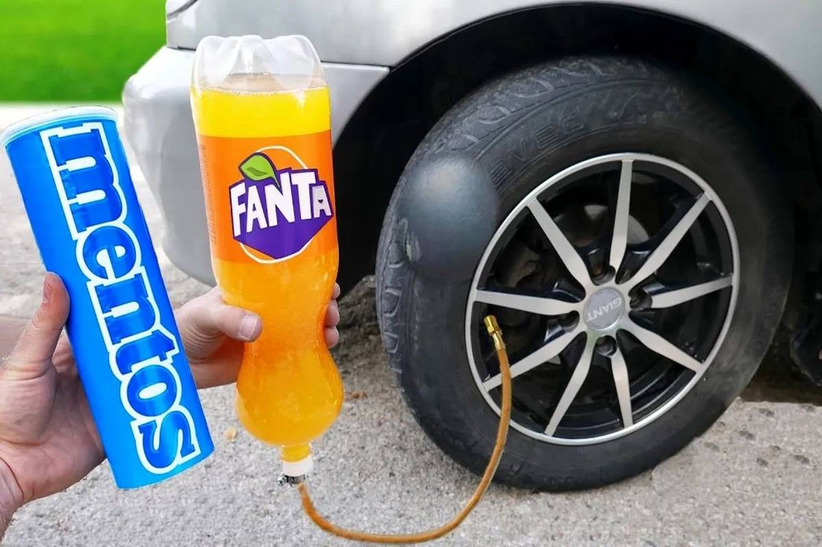 در این ویدئو یک اینفلوئنسر مشهور را می بینید که داخل لاستیک خودرو نوشابه فانتا و قرص نعنا می ریزد تا اتفاقات حاصل از آن را به ثبت برساند.