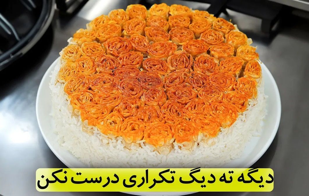فرادید نوشت: در این ویدئو یک آشپز ماهر با نان ترد و آرد و رشته کادایف سه نوع ته دیگ خوشمزه درست می کند.