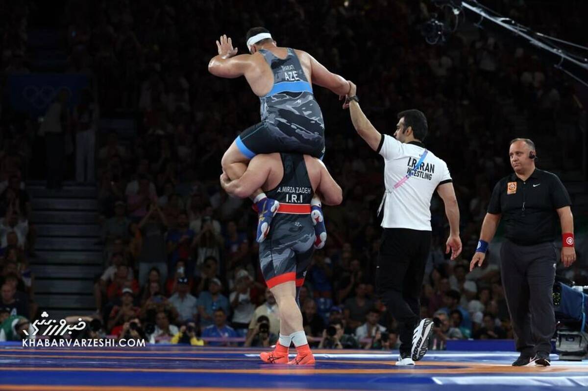 امین میرزازاده فرنگیکار ایران در وزن ۱۳۰ کیلوگرم در دیدار ردهبندی با صباح شریعتی کشتیگیر ایرانیالاصل آذربایجان مبارزه کرد و در نهایت با شکست شریعتی به مدال برنز رسید تا کاروان ایران در المپیک ۲۰۲۴ پاریس به نخستین مدال برسد.
