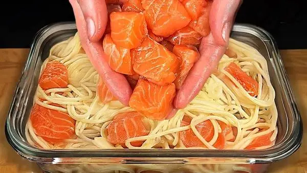 فرادید نوشت: در این ویدئو یک آشپز آلمانی با مواد اولیه شامل: 4 عدد تخم مرغ، 5 قاشق غذاخوری آرد، 400 میلی لیتر شیر، 400 گرم فیله ماهی سالمون، 200 گرم ماکارونی، 1 عدد پیاز، 1 حبه سیر، 1 هویج، پیازچه، یک عدد گوجه فرنگی، 50 گرم کره و 100 گرم پنیر رنده شده این غذا را درست می کند.