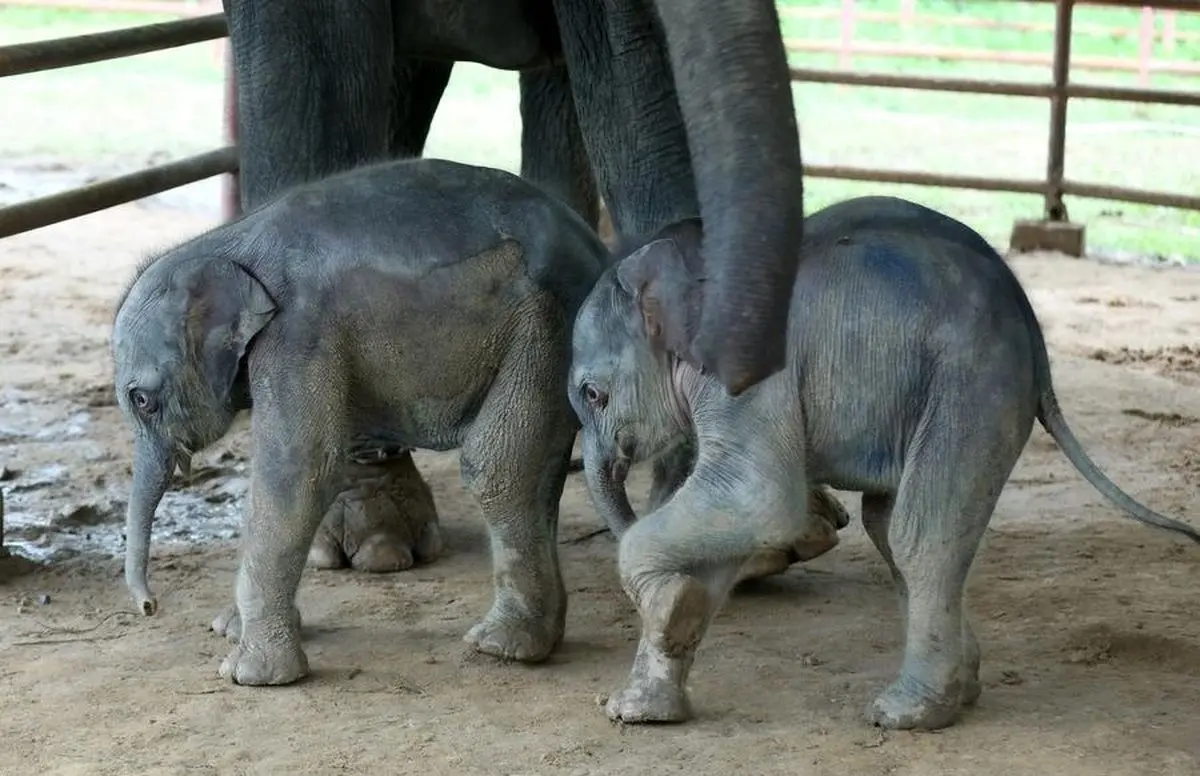 طبق گفته سازمان تحقیقات و حفاظت از فیل‌ها، دوقلو‌ها تنها در یک درصد از فیل‌ها به دنیا می‌آیند و نر و ماده حتی نادرتر است.