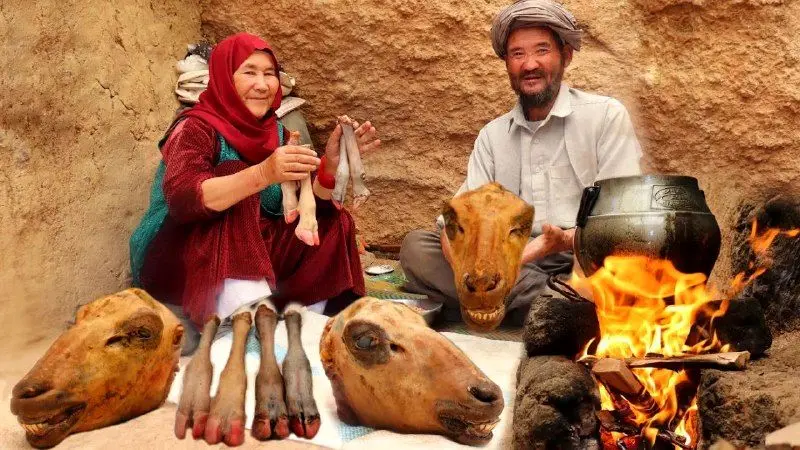 در این ویدئو یک زوج غارنشین اهل افغانستان را خواهید دید که با کله پاچه یک غذای خوشمزه و سنتی درست می کند.