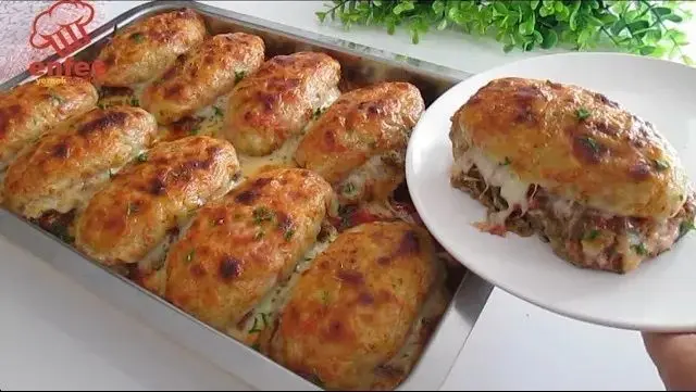 در این ویدئو یک آشپز ماهر با مواد اولیه شامل: ۴۰۰ گرم ران مرغ بی استخوان، ۶۰۰ گرم گوشت سینه مرغ، یک عدد پیاز، ۲ حبه سیر، دو قاشق غذاخوری جعفری خردشده، یک عدد فلفل قرمز، پوست یک لیمو ترش، یک قاشق غذاخوری نمک، ۵ گرم بیکینگ پودر، یک قاشق چایخوری فلفل سیاه، یک قاشق چایخوری فلفل قرمز، یک قاشق چایخوری فلفل قرمز پول بیبر، یک قاشق چایخوری زیره، نصف قاشق چایخوری پودر کاری، نصف قاشق چایخوری پودر سیر، نصف قاشق چایخوری زرد چوبه، ۱۰۰ گرم کره، یک عدد تخم مرغ و ۸۰ گرم آرد این غذا را درست می کند.