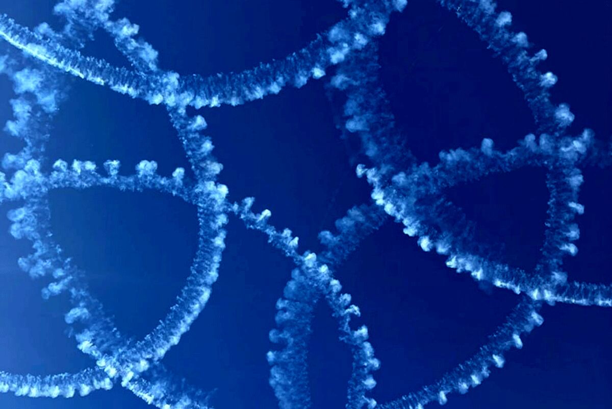 هنرنمایی تیم خلبانی آکروباتیک نیروی هوایی ژاپن در استادیوم تویوتا در استان آیچی در افتتاحیه رالی اتومبیلرانی ژاپن، این هواپیماها تصاویر ساکورا و قلب را در آسمان نقاشی کردند.