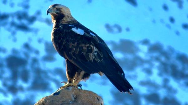 مرتضی خورشیدی، افزود: عقاب شاهی گونهای پرنده شکاری از تیره بازان و راسته بازسانان است که در دوران بلوغ پرهای زینتی قهوهای مایل به سیاه دارند.