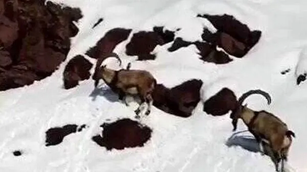 فیلمی از بز کوهی سلطان صخره‌ها در برف در ارتفاعات البرز مرکزی شمالی منتشر شد.