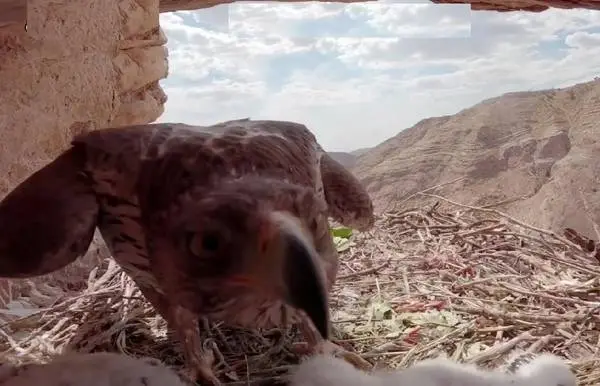 آشیانه عقاب دوبرادر، یکی از جسورترین پرندگان شکاری ایران، در ارتفاعات زاگرس استان ایلام و محدوده تنگه کافری قرار دارد. این منطقه به دلیل شرایط خاص جغرافیایی و اکولوژیکی، یکی از زیستگاههای مهم و مناسب برای این پرنده بهشمار میرود. خوراک این عقاب در زنجیرهای شامل خزندگان کوچک و بزرگ، پرندگان و پستانداران مانند خرگوش و روباه است. در این تصویر، عقاب دوبرادر در حال شکار یک کبک و یک مارمولک آگاما برای تغذیه جوجههای خود است. این تصویر توسط صادق پرویززاده، صخرهنورد، عکاس و فیلمبردار حیات وحش، ثبت شده است. پرویززاده با تخصص خود در زمینه حیات وحش و عکسبرداری، لحظات شگفتانگیزی از زندگی این پرندگان را به ثبت رسانده است. تواناییهای شکار این عقاب، آن را به یکی از جسورترین و ماهرترین شکارچیان در میان پرندگان شکاری تبدیل کرده است.