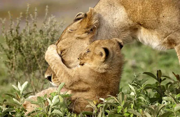 شیر ماده که گمان میکرد در جایی که توله اش را میندازد زمین است با انداختش در آب با نگرانی زیاد و با چنگ و دندان برای بیرون کشیدنش تلاش کرد.