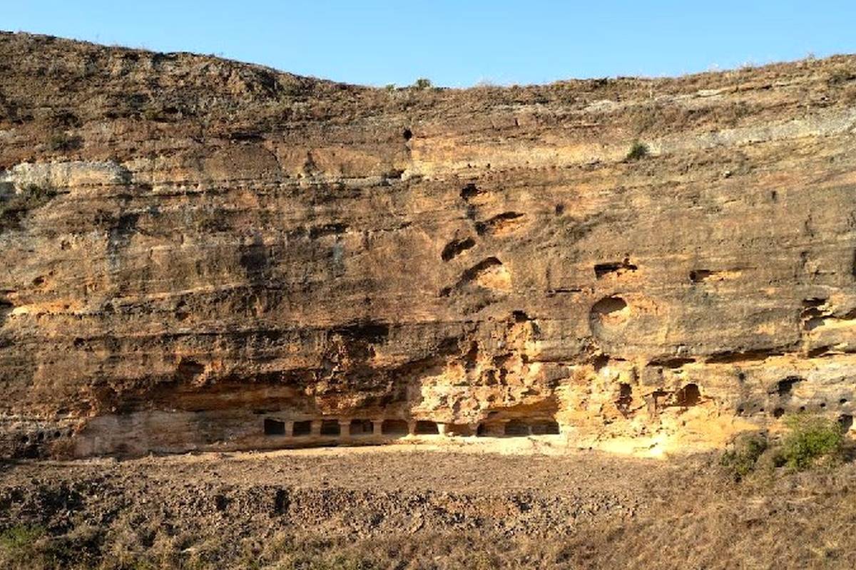 دهها طاقچهی حکشده در صخرهها مانند اتاقهای کوچک مرتفع به نظر میرسند که چند متر عرض و عمق دارند. بسیاری از ورودیهای آنها با فرورفتگیهای مدور احاطه شده، احتمالاً به این دلیل که میتوان آنها را با درهای چوبی یا سنگی بست.